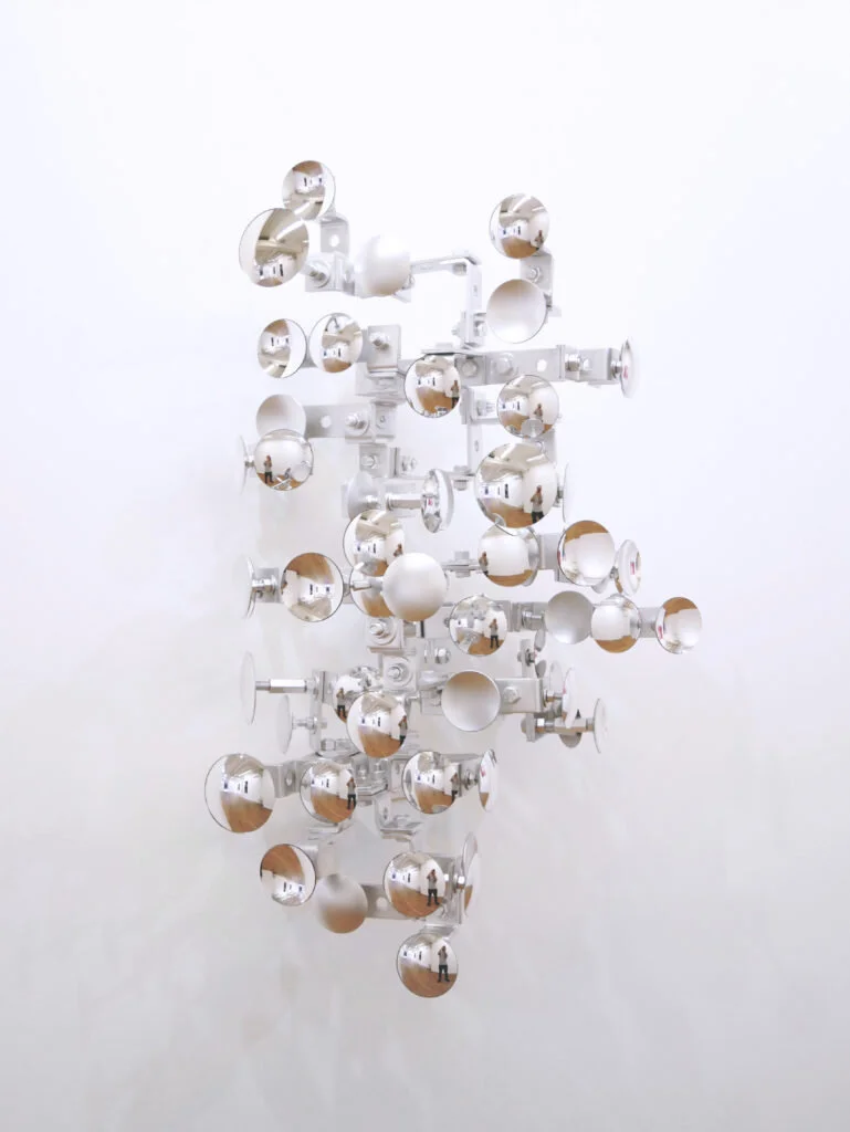 Gustavo Prado, Climb, 2019, Measure of Dispersion series, Metal and mirrors, 39 ½ x 24 x 16 inches. Image courtesy the artist and Galerie Richard