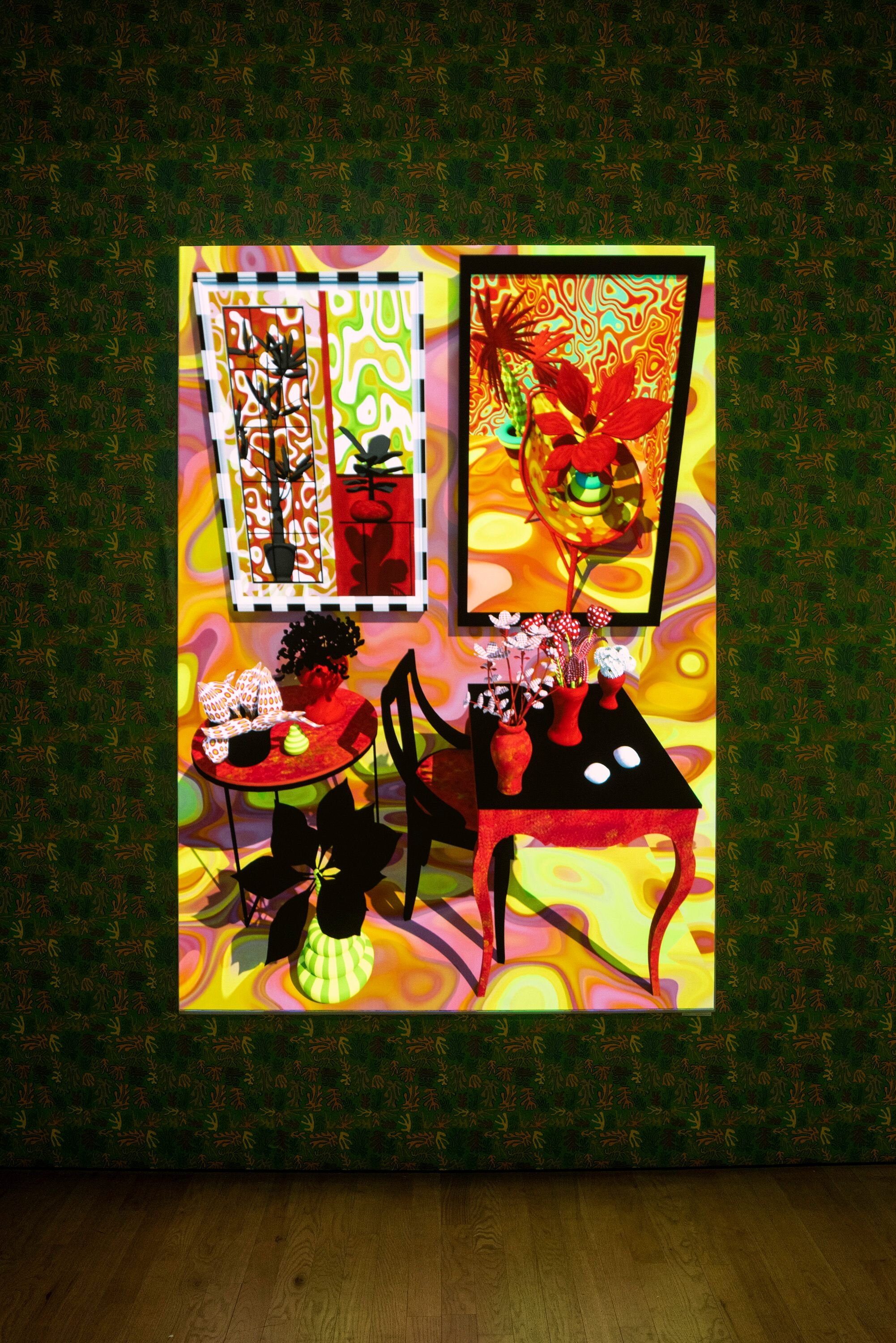 With Matisse, he put the flowers on the table, and they became part of the wallpaper: it's this repetition of images within images, windows within windows. My idea is that you would have levels of screens, the monitor in the room, which has the picture of the picture, the simulated space, a recursive system. It uses itself to build itself and this idea of recursivity is a motif you see in digital art that appears all the time because it's in the nature of the medium.