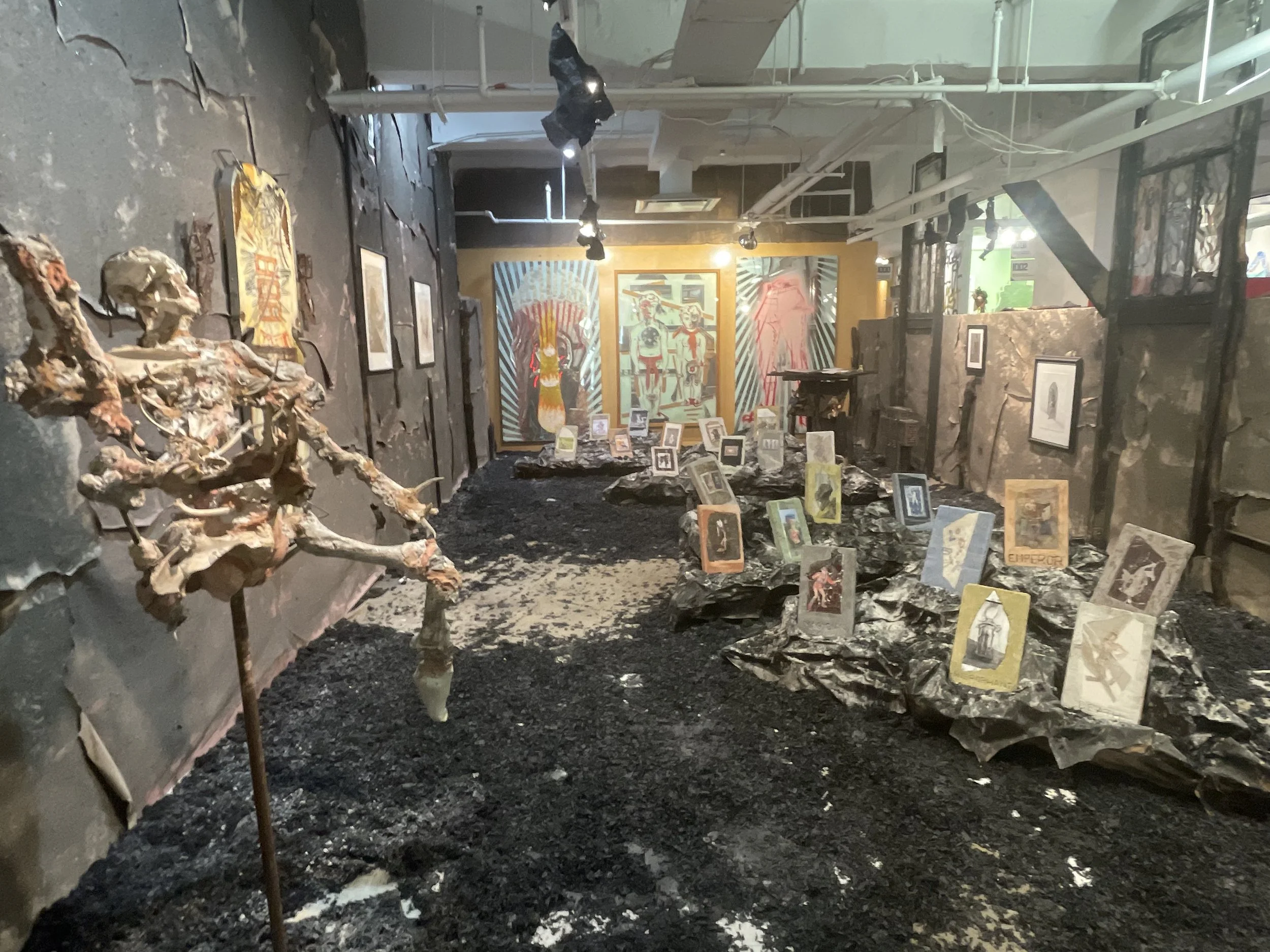 Featuring work by Cecilia Caldiera, Bruno Smith, Ray Smith, Jesse Gengenbach, Rhys Gaetano, Victor Vazquez, Jesse Keating, Walker Behl, Tone Tank, and Z Behl, Chapel of Traumatology presents an arcane space in a state of glorious ruin. Z Behl’s gravestone-like sculptures based on Tarot cards are materially unique, each being a UV print on marble cast in concrete. Behl’s Skeleton Woman, a sculpture made from concrete and bones, adds to the booth’s powerful atmosphere of ruin and decay.