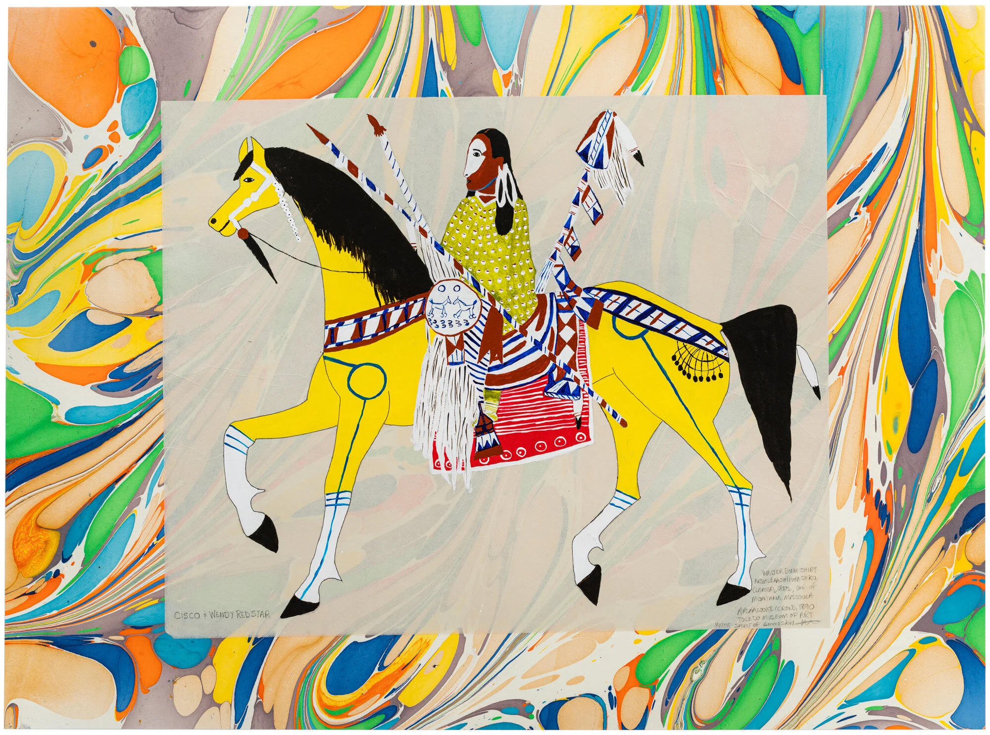 In this age of virtual exhibitions and buzzword art reviews, galleries increasingly rely on the marketing potential of the works they choose to show. For many, to be a contemporary artist is to develop products for sale—Eckhaus Latta broke the fourth wall in 2018 by installing a functional clothing store in the Whitney, for example. In the New York art world, those who intentionally agitate the easy consumption of art help to pick away at the unseen forces of colonialism and economic exploitation. Brings Good Horses, a solo show by multimedia artist Wendy Red Star at Sargent’s Daughters, seems more like a museum show or a presentation of a personal collection than a commercial gallery exhibition. The result is a demonstration of historical power and subversive artmaking that stands against the pandering art market.