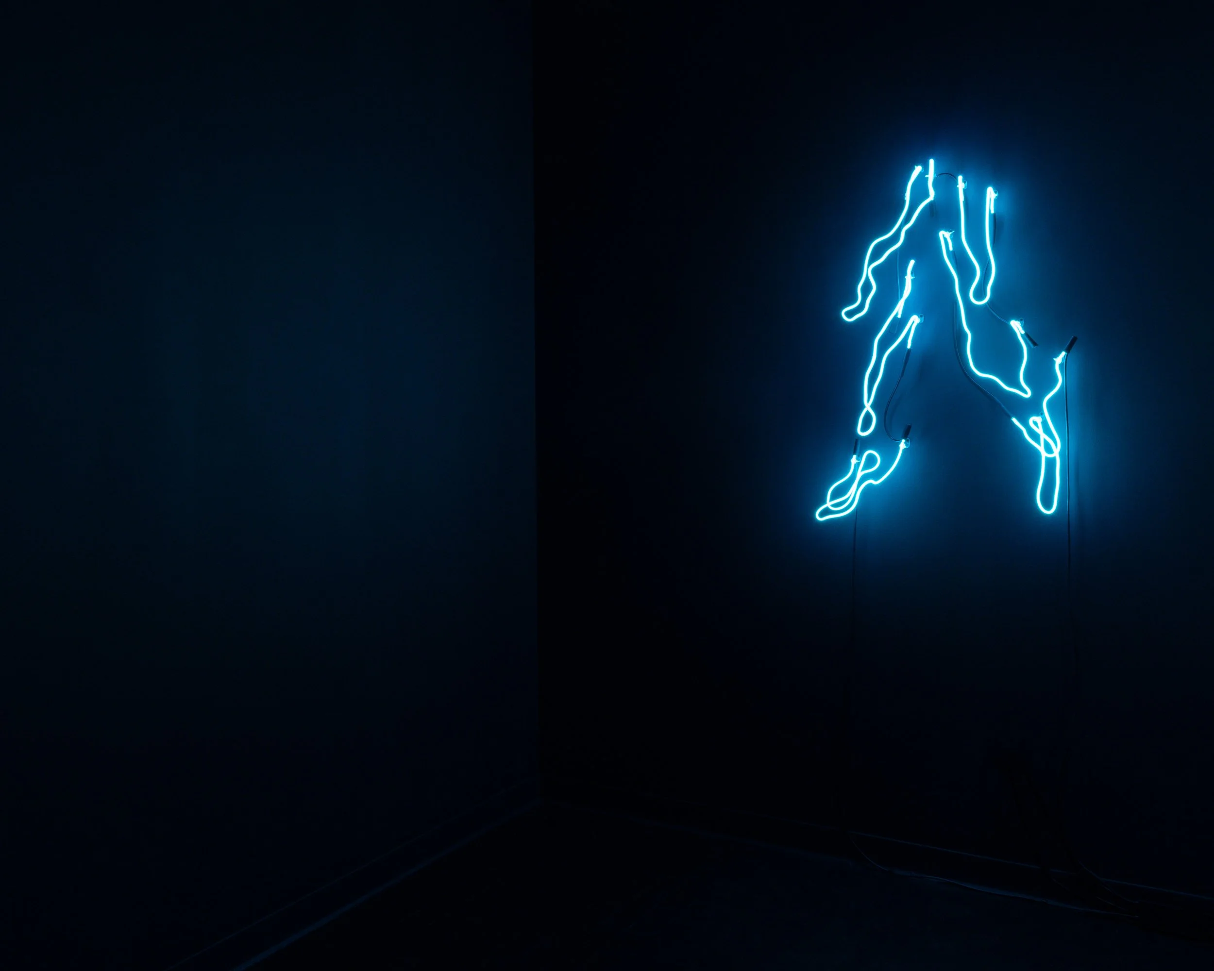 Encountering Fluid Forms ensuite together in Eternal Current exerts a magical presence. Visitors encounter the electrifying abstractions as trickles of thought manifested in three-dimensional space. The otherworldly bright blue curves tumble over themselves in movements frozen in time that evoke bodily forms or fluids. The preciousness and perceived fragility of Le’s delicate glass neon tubes belies the strength and skill required to create these intuitive forms. Fluid Forms evokes the spirit of something captured and made physical — spiritual, mystical, and dreamlike.